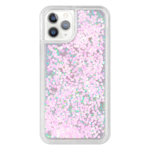 ケースの中に水と小さいラメ・ハート型のラメが入っており、ラメが水の中をサラサラと流れるケースです。