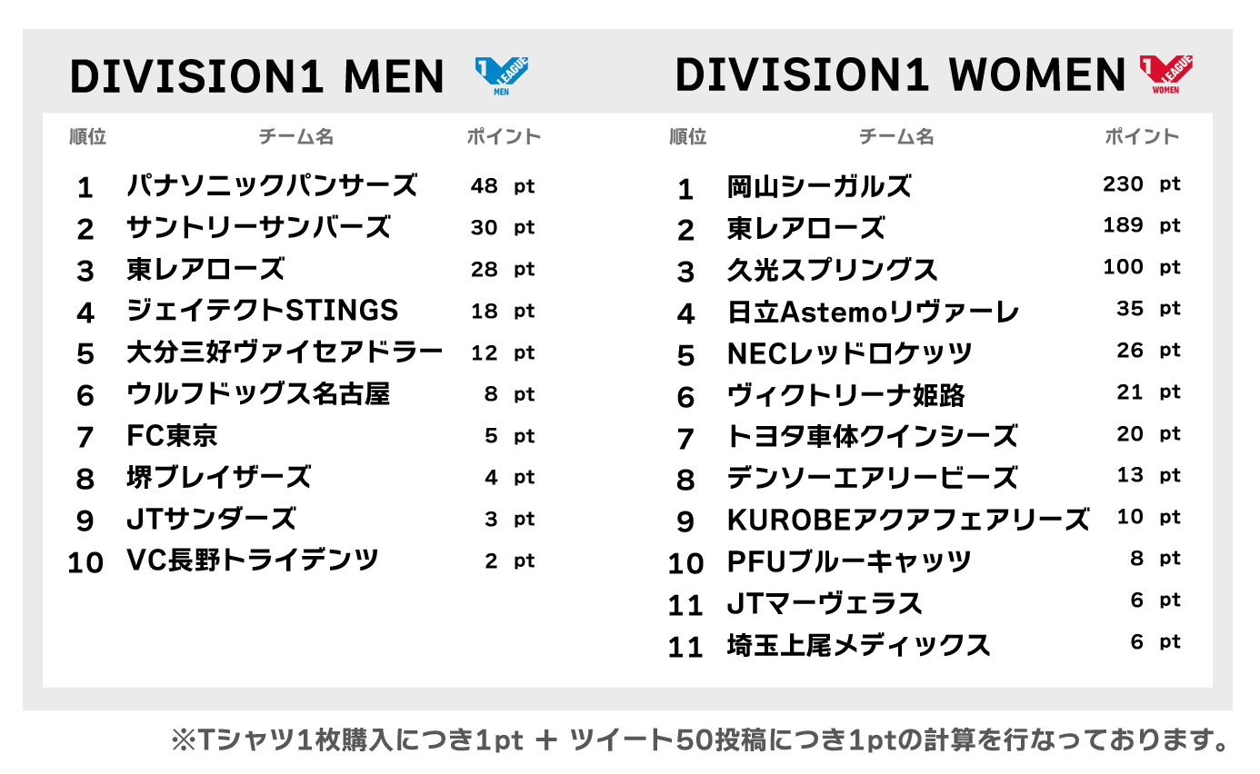 Vリーグの各チームより本イベント限定のオリジナルデザインTシャツを販売します!