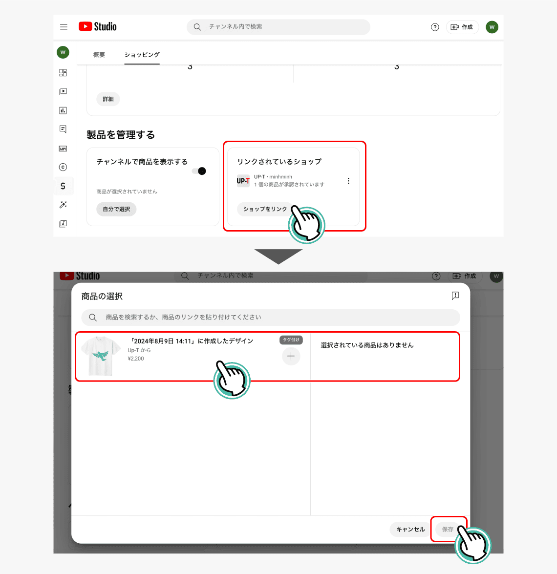 ※ UP-Tで販売停止や商品の削除をすると、YouTubeへ連携される商品情報も削除されます。
