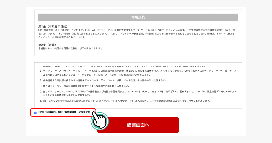 「利用規約」及び「販売時規約」に同意するにチェック!