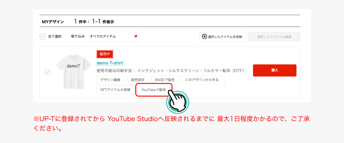 UP-TのアイテムがYouTubeで販売可能に!